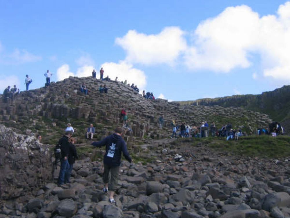 First stop was the Carrick-A-rede Rope Bridge, swaying off the coast above the North Atlantic Ocean. Then onto the Giant’s Causeway, the strange hexagonal rock formations, the result of some weird geological activity or some weird giant activity, I can never remember which.
